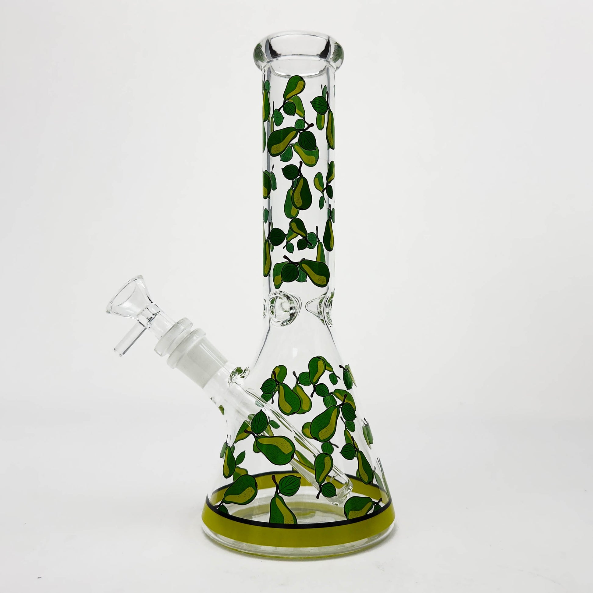 The FT08 10" Glass Beaker Bong features a playful and eye-catching apple pattern design combined with a classic beaker base for stability and smooth performance. Crafted from durable glass, this bong offers reliable water filtration while standing out on shelves with its unique, all-over fruit print.