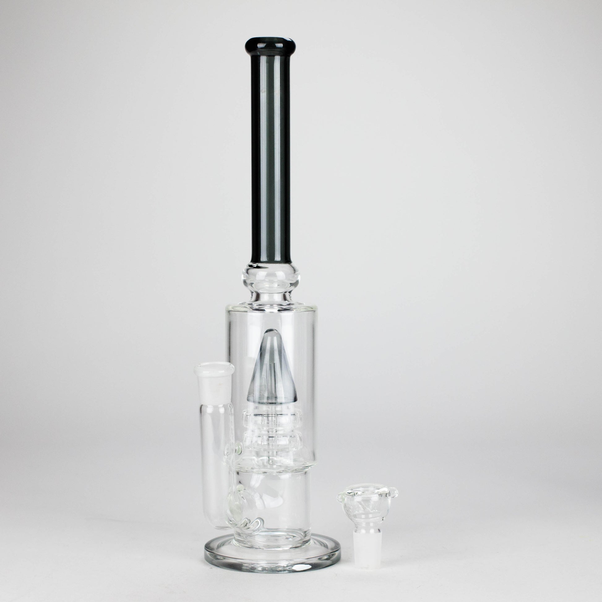 Elevate your smoking experience with the 13" Sawar T Glass Water Pipe. Crafted from durable borosilicate glass, this piece features a unique stacked chamber design and a precision-cut percolator for superior diffusion and ultra-smooth hits. The sleek color-accented mouthpiece adds a modern touch, while the wide base ensures stability during use.