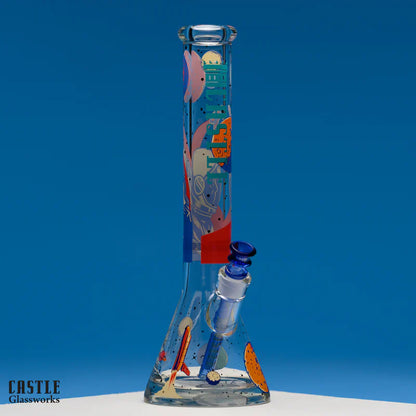 Take your sessions out of this world with the Space Case Bong, a stunning piece that merges the vast mysteries of space with the functionality you need for a perfect smoking experience. Featuring a striking design of planets, rockets, and an astronaut in bold, vibrant colors, this bong is perfect for those who love space exploration and stellar artwork.!