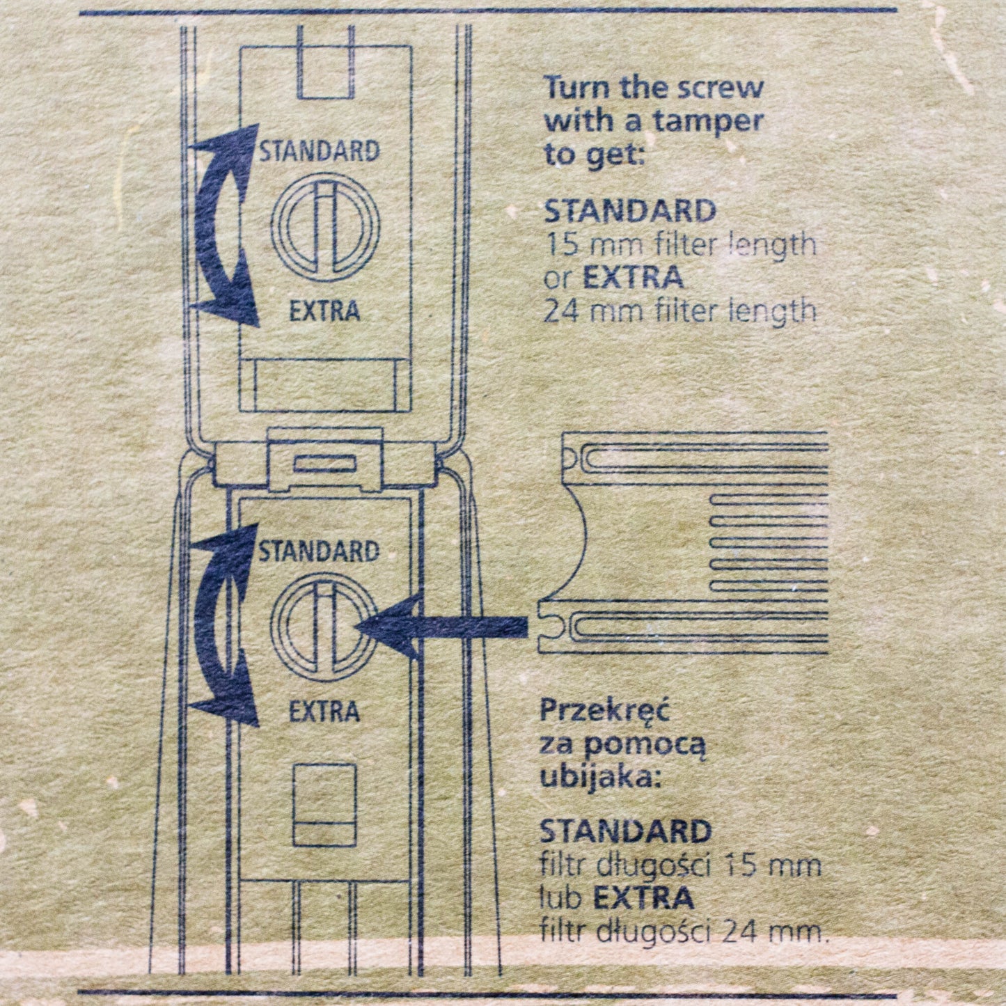 - Adujustable : Standard (15 mm Filter length) or Extra (24 mm Filter Length)