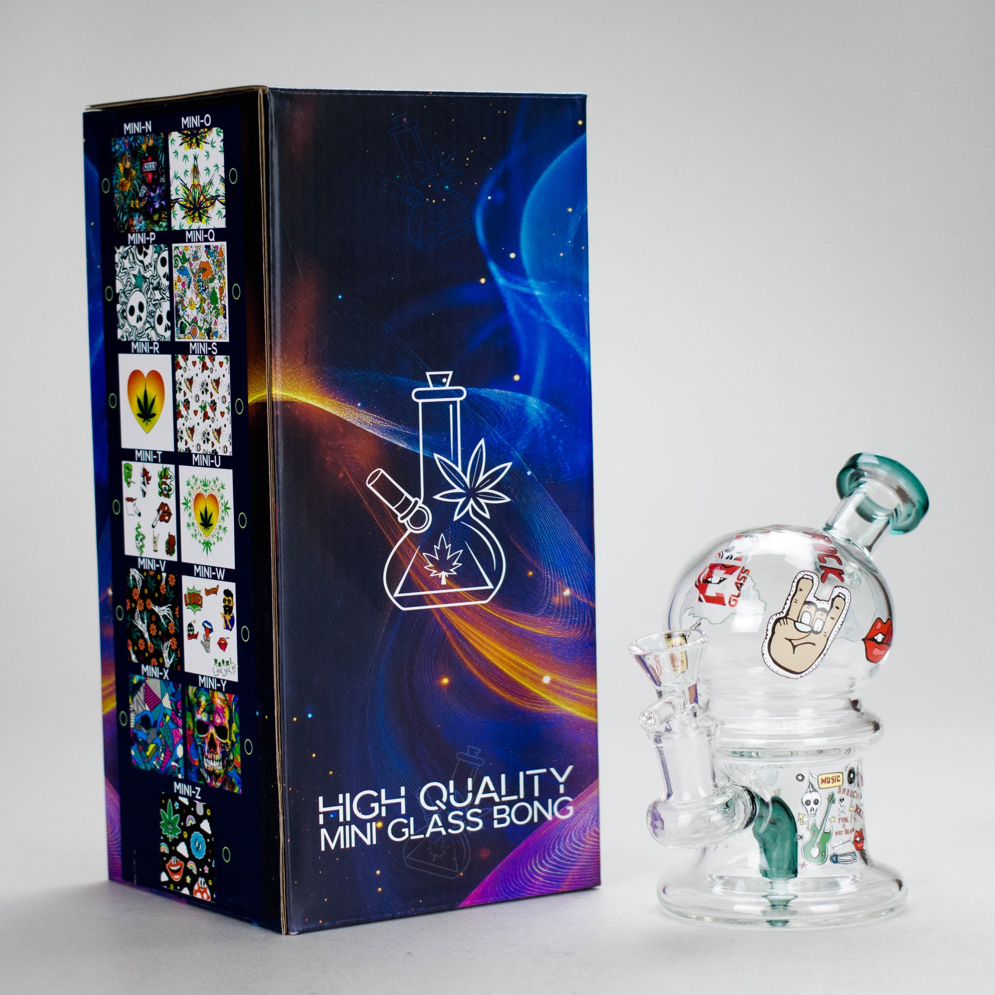 Turn up the volume on your sessions with the Haze 6-Inch Rock Music Bubble Dome Glass Bong – Mini-D. Designed for music lovers and smokers alike, this compact bong features a bold rock music theme and a sleek teal finish, blending style with smooth functionality.