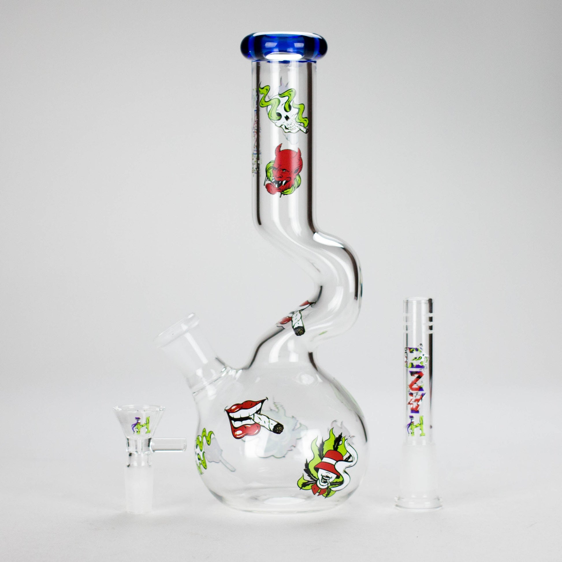 Add a fun twist to your sessions with the Haze 9-Inch Smoking Zig-Zag Bong – Mini-T. Featuring a vibrant blue finish and bold zig-zag smoking-themed artwork, this bong delivers smooth performance with standout personality.