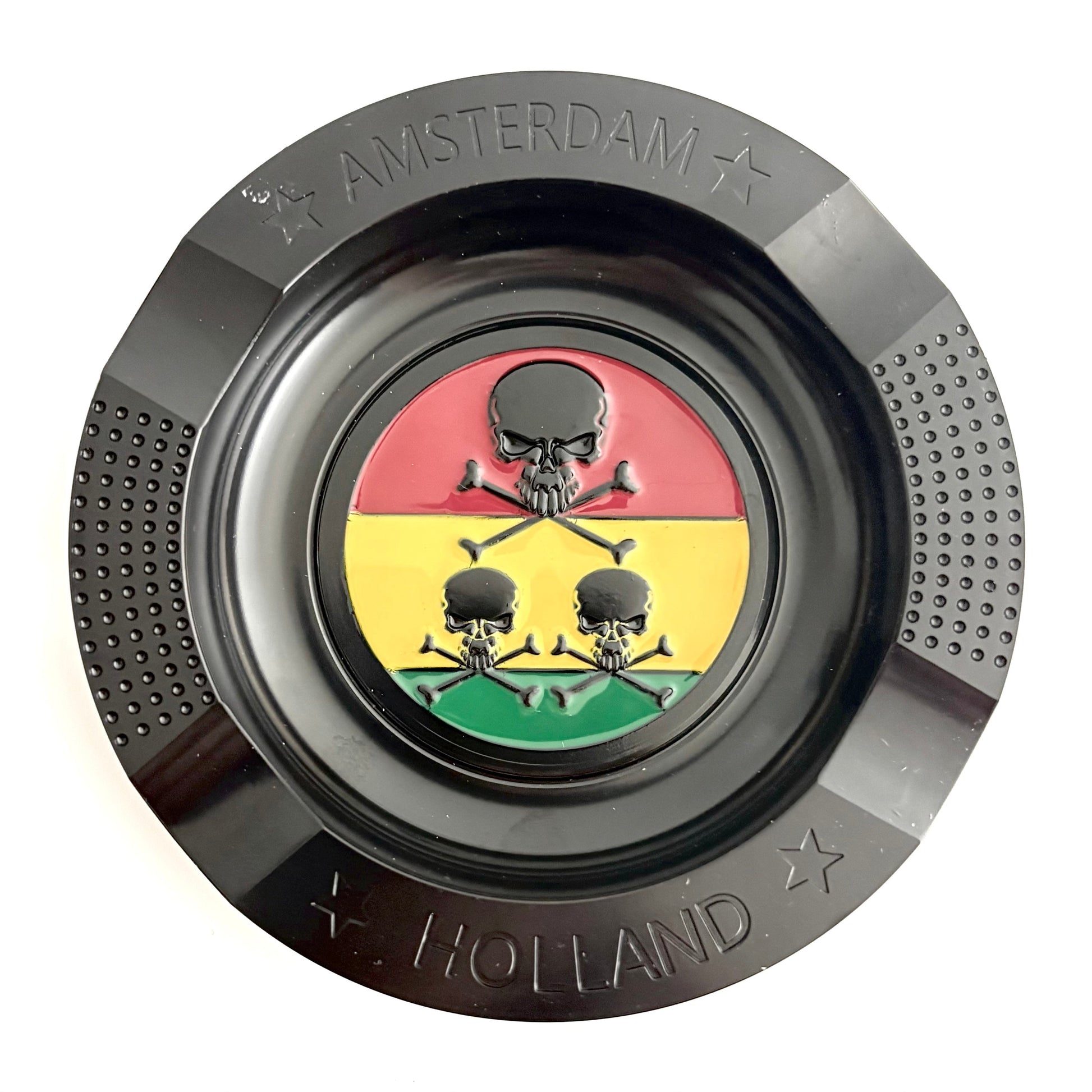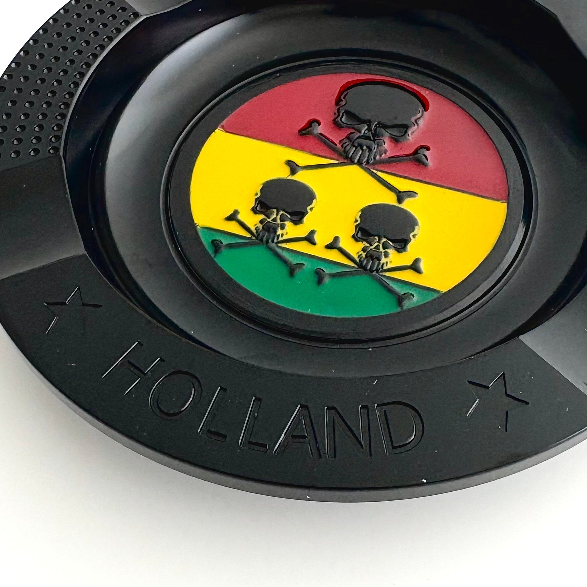 A sturdy, heat-resistant ashtray molded with a fierce skull design. Heavyweight and bold, it doubles as a statement piece for any smoke table. -