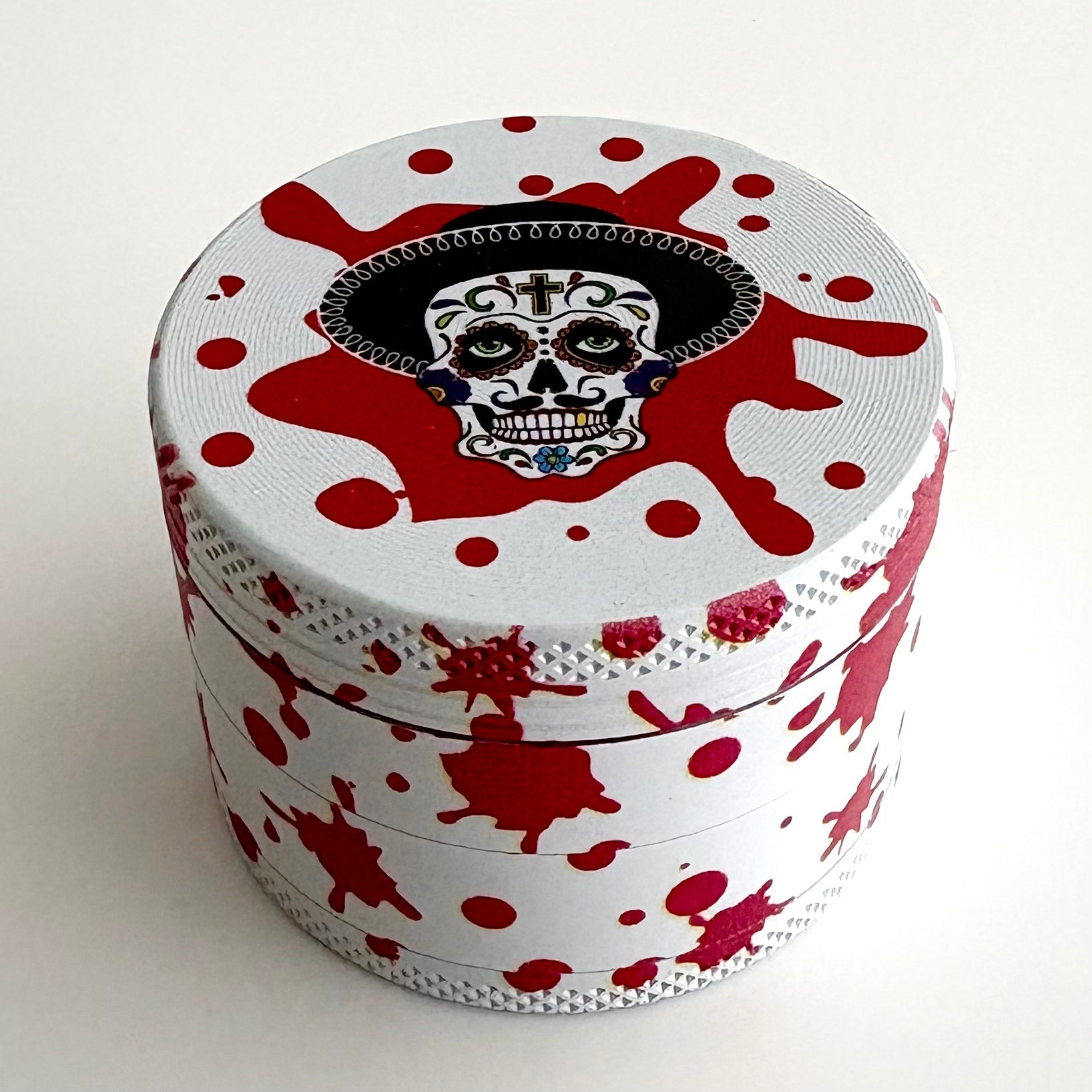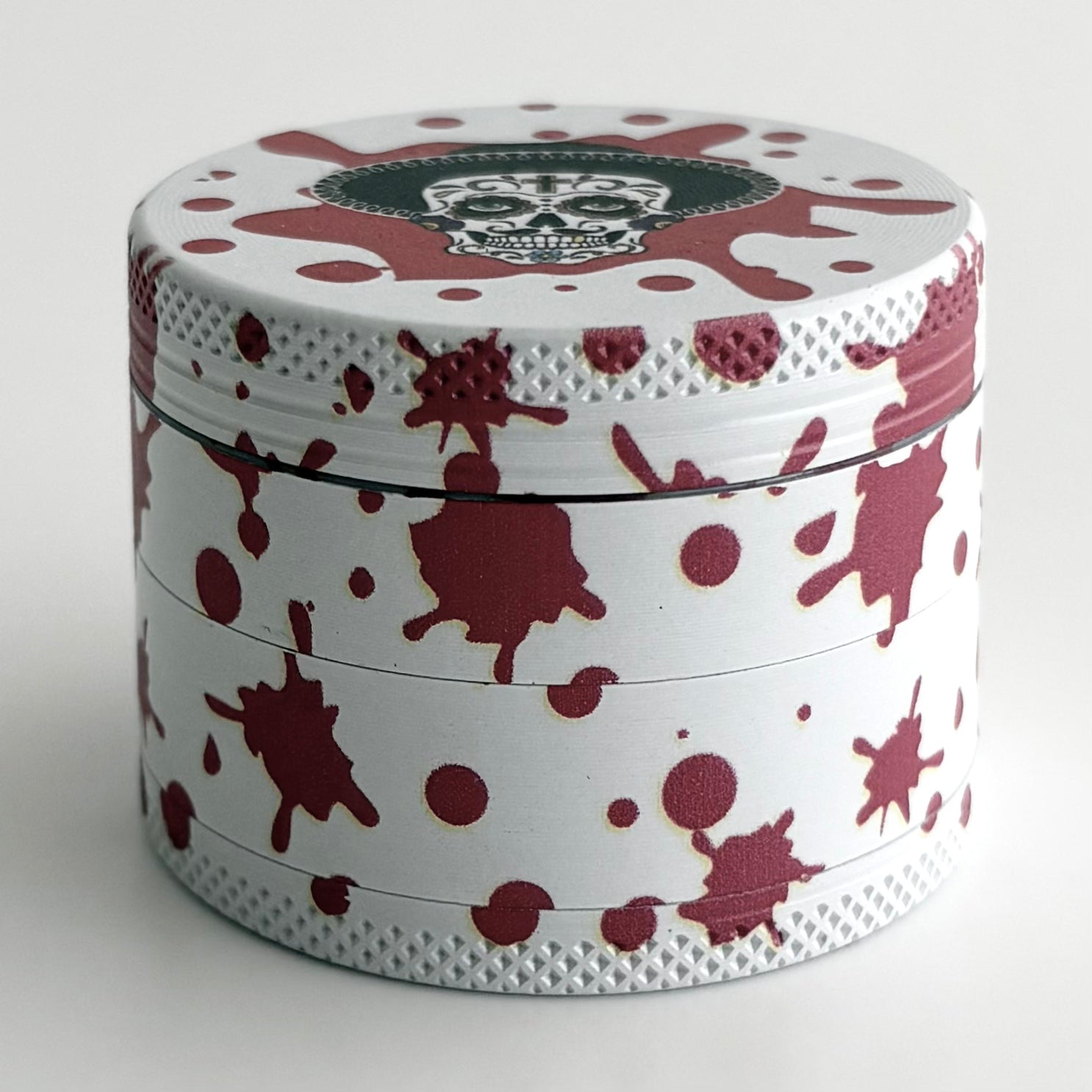 • Grinder – Sharp, compact, and custom printed with the iconic skull design.