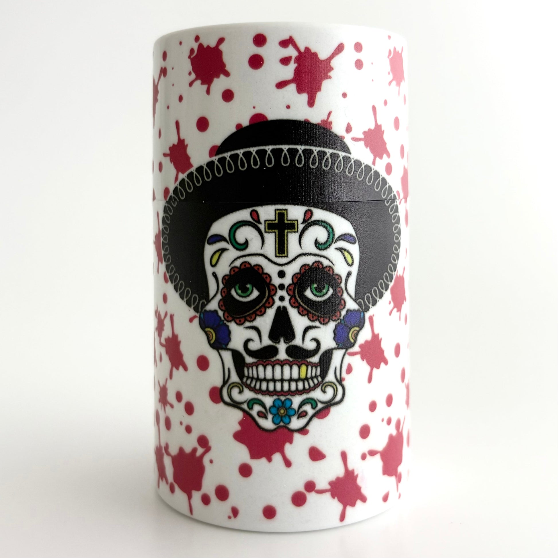 Celebrate life, death, and everything in between with the Día de los Muertos Smoking Accessory Gift Set. This 6-piece bundle fuses vibrant tradition with functional smoking gear—featuring a striking sugar skull in a sombrero and a blood-red splatter backdrop that demands attention.