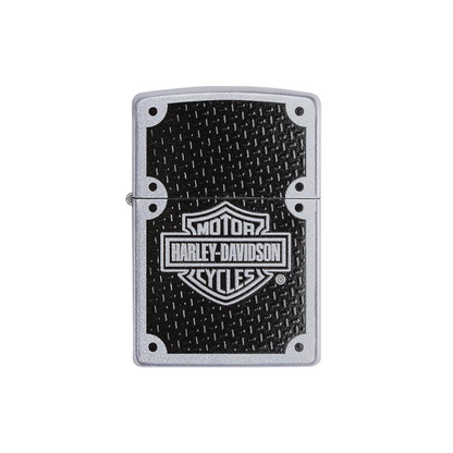 This Satin Chrome lighter features the Harley-Davidson® bar and shield logo woven into a carbon fibre background. Comes packaged in a gift box. For optimal performance, fill with Zippo Lighter fluid.